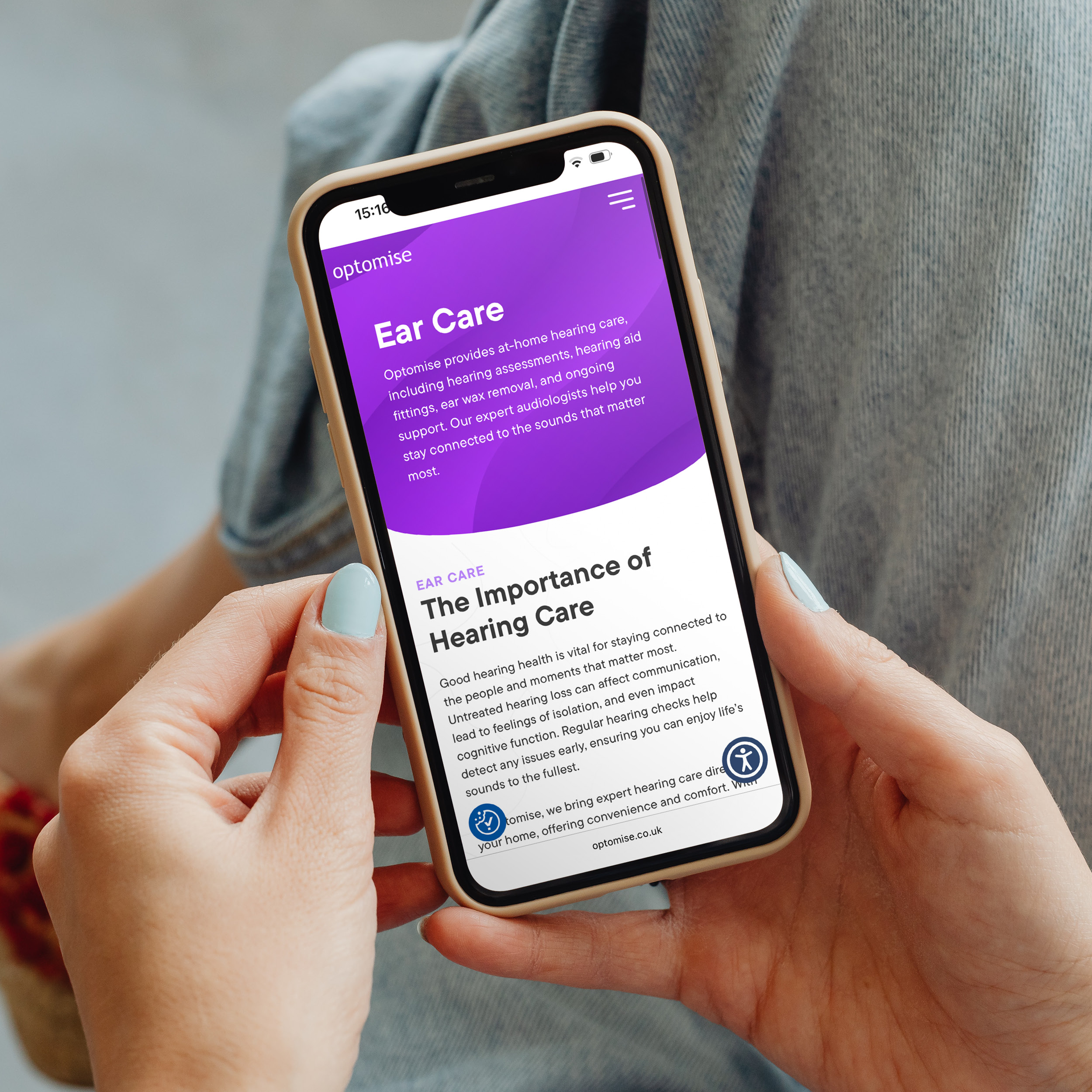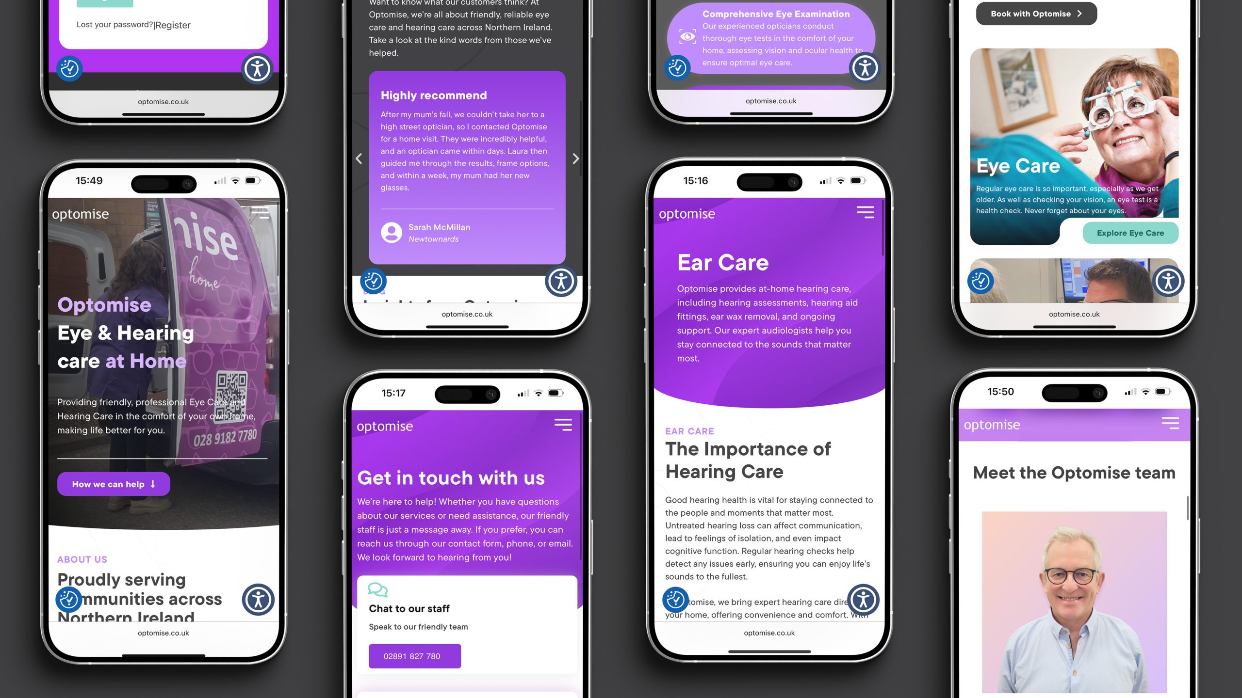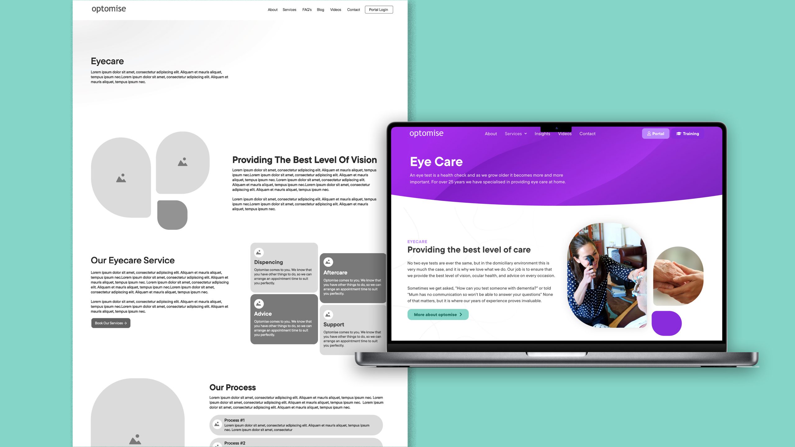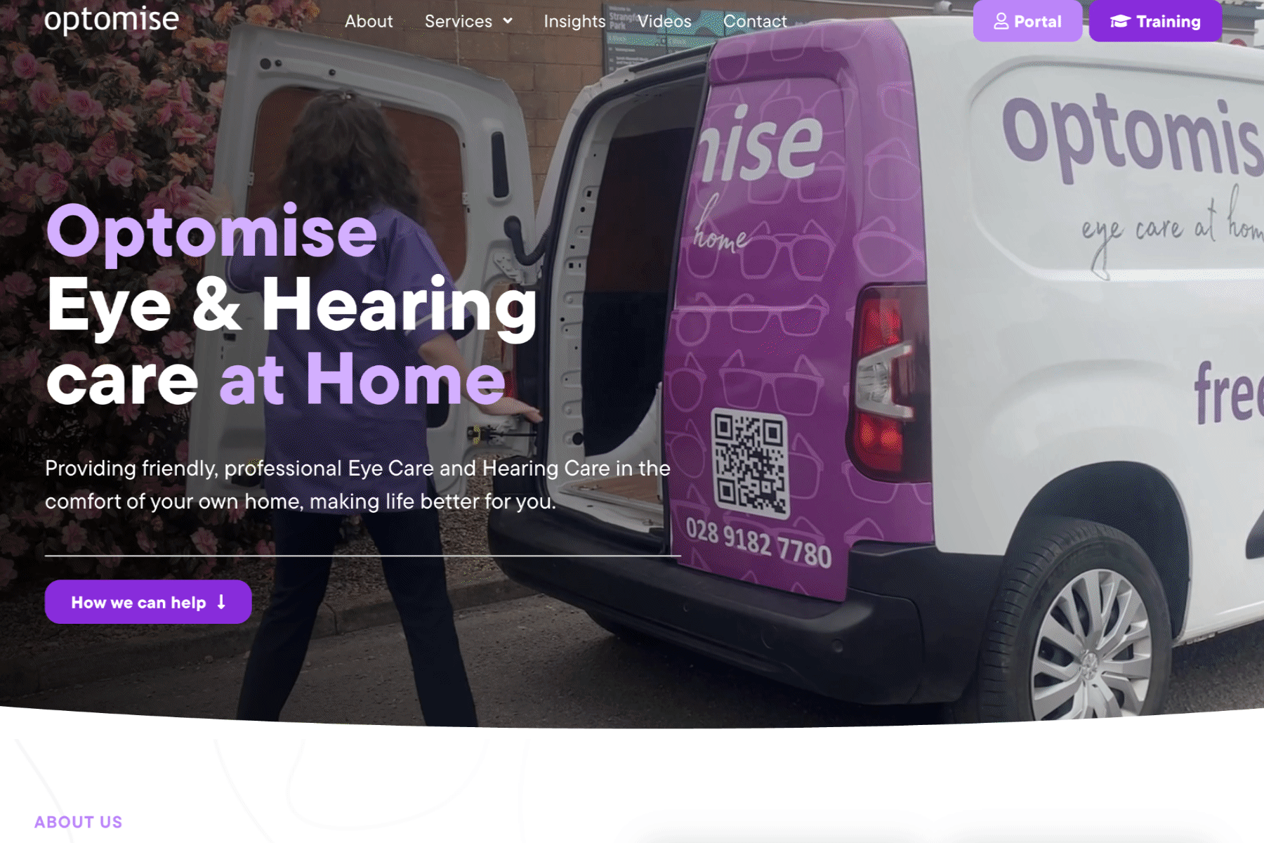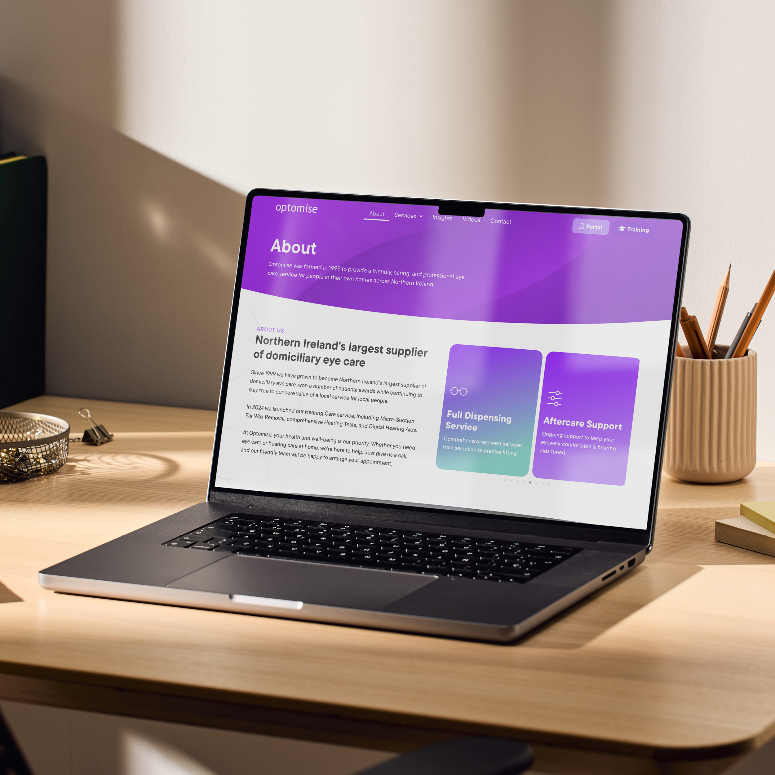 Optomise, specialising in domiciliary and care home eye care, needed a website redesign. The goal was to simplify complex services, clearly communicate unique value, and serve diverse audiences – from eye care professionals to care home staff – with seamless usability and critical functionality.